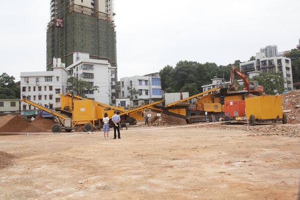 圖為華潔環(huán)保為湖南建工集團(tuán)提供移動(dòng)式建筑垃圾處理成套設(shè)備