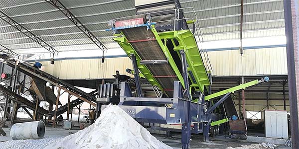 設(shè)備:WYC380輪胎式預(yù)處理車、WQZ380輪胎式輕雜質(zhì)處理車、WLF380輪胎式聯(lián)合處理車、ZSW150振動(dòng)篩分給料機(jī)、PE600X900顎式破碎機(jī)、GZD1025振動(dòng)卸料機(jī)