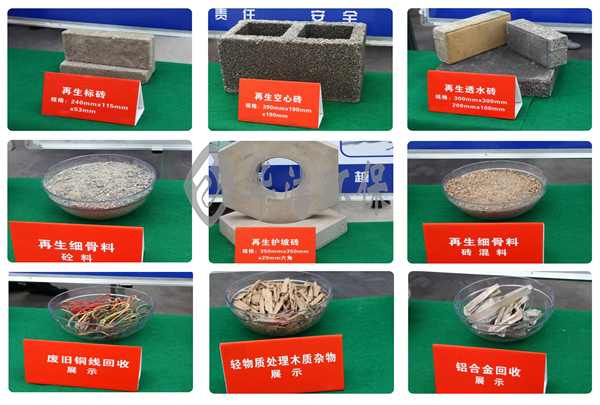 建筑垃圾經(jīng)破碎、篩分、除鐵、輕物質(zhì)分離等工藝處理后的再生骨料加工成透水磚、再生砂漿、PC預(yù)制構(gòu)件、道路水穩(wěn)層、干粉砂漿、RDF清潔燃燒棒等環(huán)保建材產(chǎn)品, 從而將建筑垃圾變廢為寶,實現(xiàn)生態(tài)效益、社會效益、經(jīng)濟(jì)效益等多方共贏的目的。