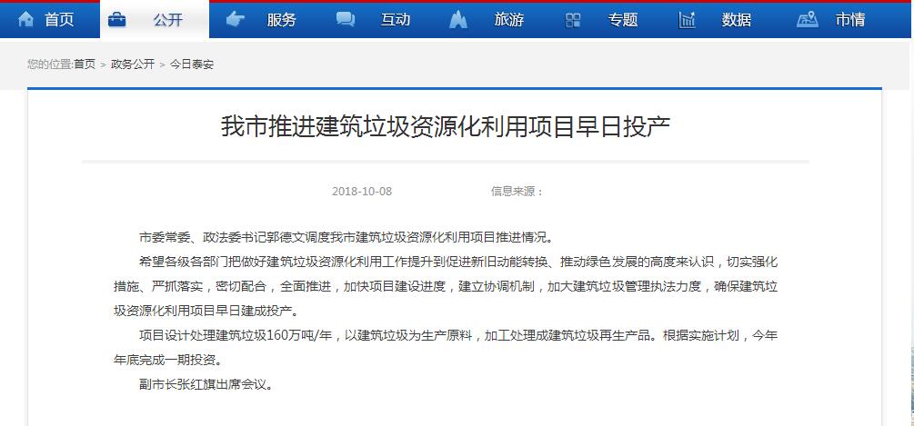 近日,泰安市政府召開會議,調(diào)度建筑垃圾資源化利用項目推進情況。希望各級各部門把做好建筑垃圾資源化利用工作提升到促進新舊動能轉(zhuǎn)換、推動綠色發(fā)展的高度來認識,切實強化措施、嚴抓落實,密切配合,全面推進,加快項目建設(shè)進度,建立協(xié)調(diào)機制,加大建筑垃圾管理執(zhí)法力度,確保建筑垃圾資源化利用項目早日建成投產(chǎn)。