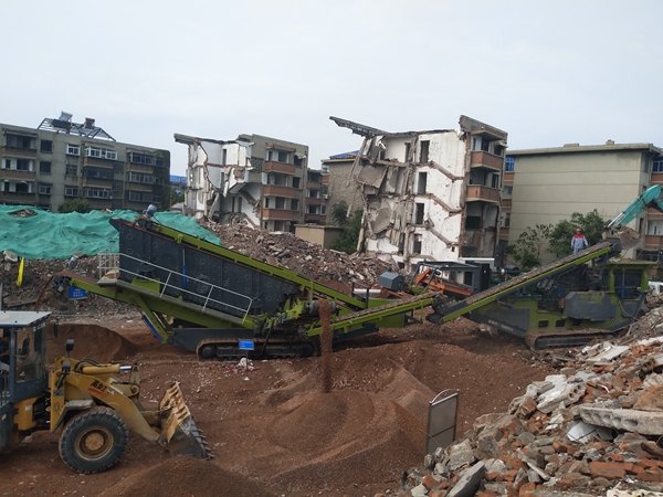 工藝三:DPF建筑垃圾專用移動(dòng)破碎站。采用DPF移動(dòng)破碎站來將廢棄混凝土和廢棄磚石研發(fā)粗細(xì)骨料,移動(dòng)破碎站處理后的再生建筑材料用途廣泛,用于研發(fā)相應(yīng)強(qiáng)度等級的混凝土、砂漿或砌塊、墻、板、地磚等建材制品。粗細(xì)骨料添加固化類材料后,又可用于公路路面基層,廢棄路面瀝青混合料可按適當(dāng)比例直接用于再生瀝青混凝土,及廢棄道路混凝土可加工 成再生骨料用于配制再生混凝土等。