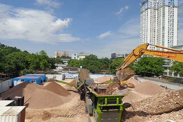 圖為DPF建筑垃圾移動破碎站使用現(xiàn)場,破碎廢棄混凝土和磚塊